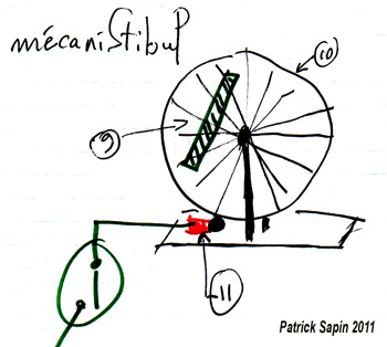 Avec « mécaniStibul », Patrick Sapin propose de mettre en piste la rencontre entre une musicienne improvisatrice soliste, Emmanuelle Saby, clarinettiste vocaliste et comédienne, et un dispositif sonore mécanique; une confrontation entre une musique sans cesse renouvelée (improvisation) et une musique qui peut devenir répétitive (musique mécanique).