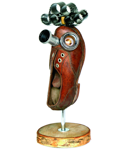 Sculptures réalisées par assemblage d'objets et de matériel photographique